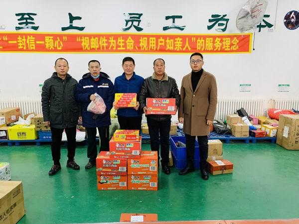 11月14日,磐石市分公司工會主席岳剛、副總經(jīng)理張連冠深入到寄遞事業(yè)部生產(chǎn)場地,為廣大員工送去了方便面、火腿腸、榨菜等慰問品,也把企業(yè)的關(guān)懷與溫暖送到了一線員工身邊。岳剛主席同時(shí)代表公司感謝全體攬投人員的辛苦付出,勉勵大家既要照顧好身體又要兼顧好工作,攻堅(jiān)克難,全力奮戰(zhàn),確保將郵件高效、安全、精準(zhǔn)地送達(dá)客戶手中,全面打贏“雙11”寄遞攻堅(jiān)戰(zhàn)。