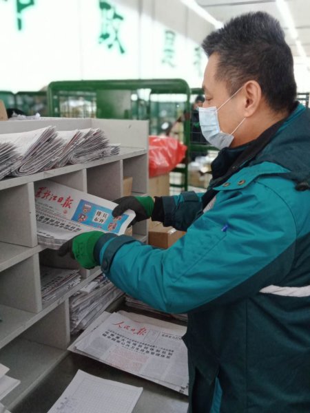 綏化市是這次黑龍江省疫情較為嚴重的地區(qū)之一,但是這絲毫不能阻擋郵政人逆行的腳步,路洋就是這樣一名綠衣使者。每天早上6:30他準時來到單位,接受體溫測量、佩戴防護口罩,一切就緒后進入工作場地,把郵件報刊依次消毒后進行分堆,細排,裝車,進行投遞。由于疫情期間小區(qū)封閉,他只能在小區(qū)門口等候用戶取件,片區(qū)內(nèi)的每個小區(qū)都是他的陣地,“您好,王先生您郵的口罩到了,請到小區(qū)門口處領(lǐng)取”、“您好,您的報刊到了,請麻煩出來領(lǐng)取。”他不懼零下20多度的低溫,始終堅持工作,為的就是確保每一份郵件安全的送達到用戶手中。雖然氣溫低也不能熄滅路洋服務(wù)的熱情,在投遞郵件的同時,他還不忘對用戶開展宣傳:“郵政365天無休,疫情期間一樣保證正常服務(wù),有需求您就給我打電話。”聽到這兒,用戶都會笑著說道:“疫情期間還這么敬業(yè),郵政是靠譜兒”。隨著投遞量的驟增,路洋比雙十一期間還要繁忙,晚上經(jīng)常加班加點,但他沒有怨言樸實地說:“我也害怕病毒,但我是一名郵政投遞員,我的職責和使命就是確保黨報黨刊和郵件安全及時投遞。在全民戰(zhàn)'疫'的重要時刻,我希望通過我的堅守,為人民傳遞幸福。”