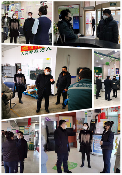 日前,通化市分公司總經理楊軍輝帶領相關人員,深入到新華營業所、和平路東營業所、東強營業所、新華郵政、二道江投遞部,看望慰問一線職工,關切詢問員工防護用具佩戴情況、測溫消毒情況,對新型冠狀病毒感染的肺炎疫情防控工作進行現場再檢查、再布置、再防范,對疫情防控與復工復產工作提出要求和意見。(吉林郵政工會)