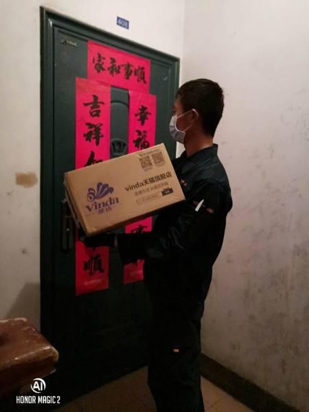 2月20日,天氣很冷,凜冽的寒風(fēng)肆虐的刮著,仿佛要把病毒吹走。馬鋼花園一個(gè)客戶要寄茶干醬菜給在外地的女兒,重達(dá)15公斤。小區(qū)實(shí)施封閉管理,快遞車輛無法進(jìn)入,陳剛只能跟客戶約定在小區(qū)門口等。在瑟瑟的寒風(fēng)中等了半個(gè)多小時(shí),客戶才跟他說讓他繞到小區(qū)北面的消防門,離他家近。踩在消防門的石墩上,整個(gè)身子幾乎半掛在門上,保持重心平穩(wěn),才接過客戶遞來的包裹,差點(diǎn)把衣服都給劃破了。但是他沒有一句怨言,跺著腳,搓搓手,繼續(xù)郵件的收寄處理。跟客戶打了個(gè)招呼準(zhǔn)備走時(shí),誰料客戶從消防門塞過來幾個(gè)一次性防護(hù)手套,“你們快遞員辛苦了,每天接觸的人很多,要做好個(gè)人防護(hù)啊,這幾個(gè)手套拿著,干活時(shí)肯定用的到!”這句話瞬間讓他之前的不情愿煙消云散,感受到了滿滿的人間溫暖。 短短兩個(gè)月陳剛就收寄了發(fā)往湖北方向各類防疫物資、生活必需品近百件以及幫助收寄國外路向的防疫物資100余件。