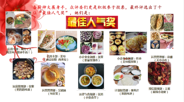 為了體現(xiàn)對(duì)女職工的關(guān)愛(ài),在疫情防控的特殊時(shí)期,渭南市、銅川市分行機(jī)關(guān)工會(huì)分別組織了慶“三八”廚藝大比拼線(xiàn)上評(píng)選活動(dòng)。渭南市分行28名選手踴躍報(bào)名參加了本次活動(dòng),上傳了各色菜系,有以辣為主的川菜系,有以面食為主的陜菜系,還有各種甜品、小吃、花式拼盤(pán)等,拼湊出一桌渭南郵儲(chǔ)的“滿(mǎn)漢全席”;銅川市分行共收到50部美食制作圖片,餃子、糕點(diǎn)、燒烤、火鍋等菜品琳瑯滿(mǎn)目,通過(guò)線(xiàn)上集贊、評(píng)選,評(píng)出“最美”廚娘,度過(guò)了一個(gè)充實(shí)快樂(lè)的節(jié)日。