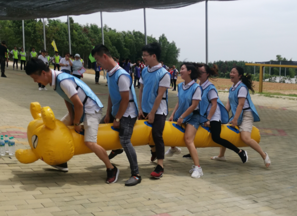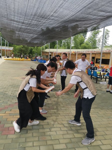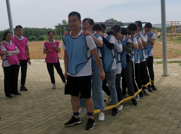 當天早上9點,大家統一乘車前往羅坊錦園拓展基地。到達基地后,在教官的指揮下,大家踩著歡快的節拍開始了活動前的熱身舞。各個新建團隊按照教官的指令開始了團隊展示活動。展示結束,各隊成員團結一致,通力合作,共同完成了“毛毛蟲”、“同舟共濟”、“十人九足”、“千里傳珠”等團建項目。