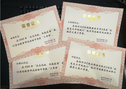 近日,杭州市分行捷報頻傳,由市分行工會選送的多篇征文和多幅照片在市金融系統多項活動中喜獲獎項。