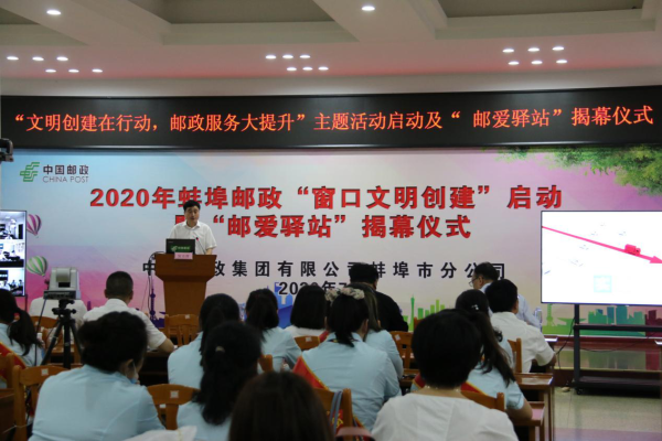 7月9日上午,蚌埠郵政“文明創(chuàng)建在行動,郵政服務(wù)大提升”主題活動既“郵愛驛站”揭幕儀式在公司會議室隆重舉行。蚌埠市總工會副主席孫創(chuàng)、市公司總經(jīng)理許峰出席儀式,東區(qū)分公司、西區(qū)分公司、寄遞事業(yè)部50余名員工代表參加了啟動儀式,各縣分公司通過電視電話會議的形式同步進(jìn)行。