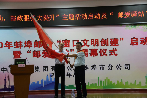 儀式中,公司黨委書記、總經(jīng)理許峰給志愿者服務(wù)隊授旗,并對“郵愛驛站”進(jìn)行揭幕?!班]愛驛站”,是蚌埠市總工會和蚌埠郵政開展面對面、心貼心、服務(wù)廣大戶外勞動者、市民的一項重要工作,體現(xiàn)了“人民郵政為人民”的服務(wù)宗旨,營造了支持關(guān)愛戶外勞動者的氛圍。勝利路營業(yè)大廳作為首個“郵愛驛站”站點,將積極踐行社會責(zé)任,提升客戶體驗,加大宣傳力度,并根據(jù)實際需求,繼續(xù)加強(qiáng)建設(shè)和管理,不斷擴(kuò)大“愛心驛站”建設(shè)工作,用心用情為更多戶外勞動者、市民提供更加完善的服務(wù),提供一個溫馨的港灣。
