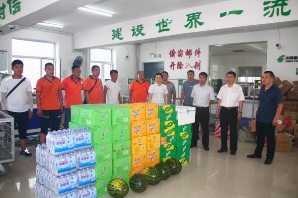 烈日炎炎正當頭,夏送清涼正當時。為切實做好夏季防暑降溫工作,維護高溫期間一線職工的身體健康,確保生產經營順利進行。7月23日—24日,梨樹縣分公司總經理石俊生、工會主席殷洪偉、辦公室主任趙雪親臨一線生產班組,為奮戰在一線的職工們送去礦泉水、冰綠茶、冰紅茶、西瓜、雪糕等清涼降暑物資,并叮囑大家注意休息、謹防中暑、注意飲食、勞逸結合、安全作業。
