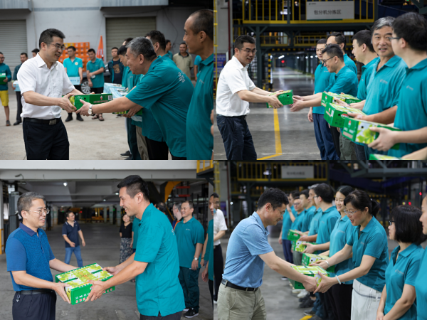 入伏以來,連日高溫多雨,7月22日,時值大暑。合肥郵區(qū)中心局黨委書記、總經(jīng)理錢志雄帶領(lǐng)局班子成員及相關(guān)部門負(fù)責(zé)人一行深入生產(chǎn)單位親切慰問堅守在暑期防汛一線的職工,為大家送上酸梅湯、蘇打水等防暑降溫飲品。