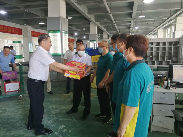 8月10號-11號,省分公司馬俊林副總經理攜省寄遞事業部李峰經理、汪勝國主任和工會黃勇主任一行輕車簡從,赴宣城市分公司開展“送清涼”慰問,親切看望慰問不畏酷暑、堅守崗位的生產作業一線員工,為他們送去清涼飲料及防暑降溫物品。