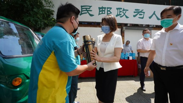 驕陽似火,烈日當空,近日北京郵政工會王艷主席來到了朝陽郵政水碓子投遞部,為一線投遞員發放大容量保溫壺、夏季養生谷物。此次市分公司工會送來的保溫壺可謂是郵政人的專屬壺,每一個保溫暖壺身上都印有中國郵政字樣及標志,讓每一名投遞員都深深感受到了自我歸屬感與幸福感,豐富的夏季養生解暑谷物更是貼心到家。慰問中,王艷主席細致地了解了投遞員最近的工作情況,對在疫情間、烈日下始終堅守崗位的所有一線職工表達了真摯的感謝,并親切叮囑大家一定要注意防暑補水、遵守各項安全生產規定,確保勞動安全和身體健康。職工們紛紛感謝市分公司領導、工會部門一系列的“送清涼、送健康、送關懷”慰問活動。炎熱天氣還將持續一段時間,朝陽郵政的每一位投遞員勢必將繼續發揮吃苦耐勞的精神,用頑強的意志和戰斗力踐行“人民郵政為人民”的宗旨,一如既往的送好每一件包裹、服務好每一位客戶,全力打造行業“國家隊“。(北京郵政工會)