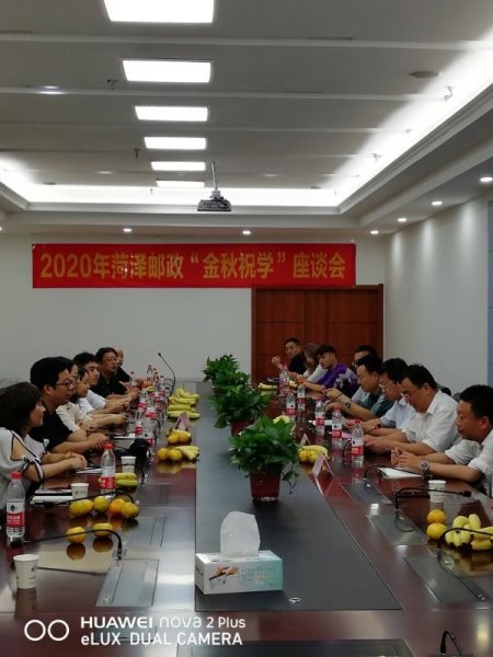2020年8月31日,菏澤市分公司在二樓會議室召開2020年菏澤郵政“金秋‘祝’學”座談會,共邀請了13位郵政員工家長和準大學生子女來到現場參加了座談會。市分公司副總經理、工會主席牛月鋒主持會議,工會、綜合辦公室負責同志參加了座談,市分公司市公司黨委書記、總經理侯堃參加座談并講話。