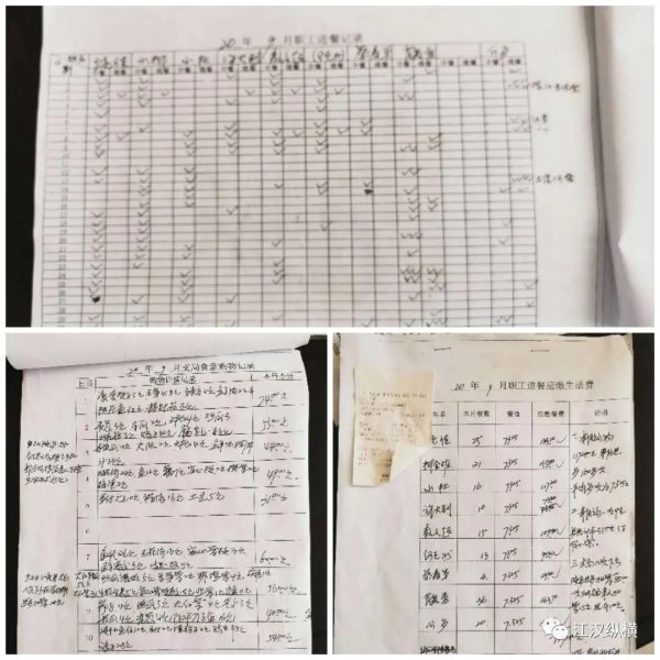 這是尺八郵政支局的后勤記載和職工評(píng)議。進(jìn)餐記錄、應(yīng)繳生活費(fèi)和食堂購物記錄,每月都會(huì)張貼出來,讓大伙心里有底有數(shù)。