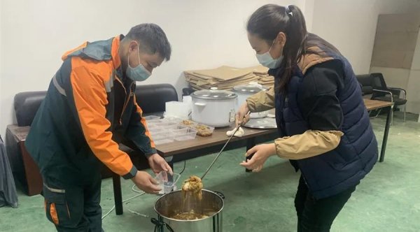為了保證員工在忙碌的“雙11”吃上熱飯、喝上熱水,豐臺區分公司各支局提前安排,盡最大努力為員工準備餐飯,周六日,員工家屬自發來到支局,與支局后勤人員一起為外出投遞的員工準備飯菜。香噴噴的五花肉和熱乎乎的丸子湯,滿載著家人和領導對一線投遞人員的關愛和鼓勵,讓他們能量滿滿、應戰高峰。