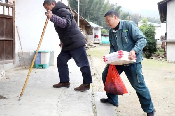 進(jìn)入三九天后的江西,每天都是天寒地凍。又是一天清晨,宜豐縣雙峰林場院南村,有位投遞員和往常一樣開著郵車背著郵包送來黨報(bào)黨刊、快遞包裹。除了這些,他還為村民們捎來了豆腐、豬肉、火籠、木炭等生活物資。