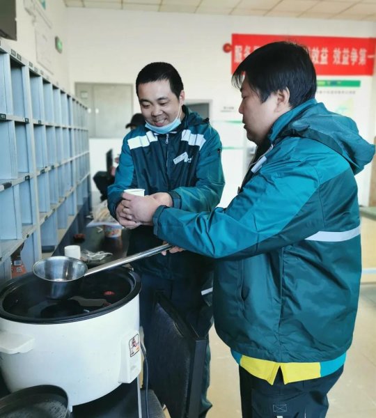 這幾天,寒潮入侵 北京迎來入冬以來最寒冷的天氣 為了讓廣大投遞員感受到溫暖 朝陽區分公司工會準備了姜茶,由各基層單位部門工會主席提前為大家熬制,讓歸班的投遞員一進門就能喝到暖暖、甜甜的姜茶,身暖心暖,工作起來更有干勁。