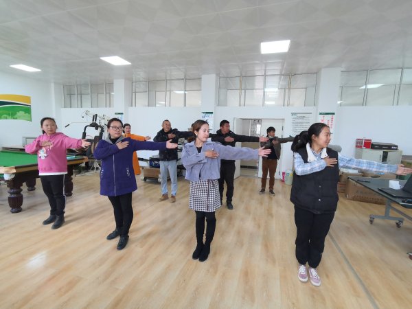 為積極推進(jìn)工間操活動(dòng),縣分公司領(lǐng)導(dǎo)帶頭學(xué)習(xí)38集回春醫(yī)療保健操,辦公室對后臺人員開展了培訓(xùn),安排每個(gè)工作日上午10:00在工會活動(dòng)室集合,跟隨領(lǐng)操員一起運(yùn)動(dòng)。每天運(yùn)動(dòng)10分鐘,盡管有的動(dòng)作不太熟練,但在場每一位都積極認(rèn)真參與。短短幾分鐘運(yùn)動(dòng)時(shí)間,大家活動(dòng)身體,舒展身心,氣氛溫馨融洽。
