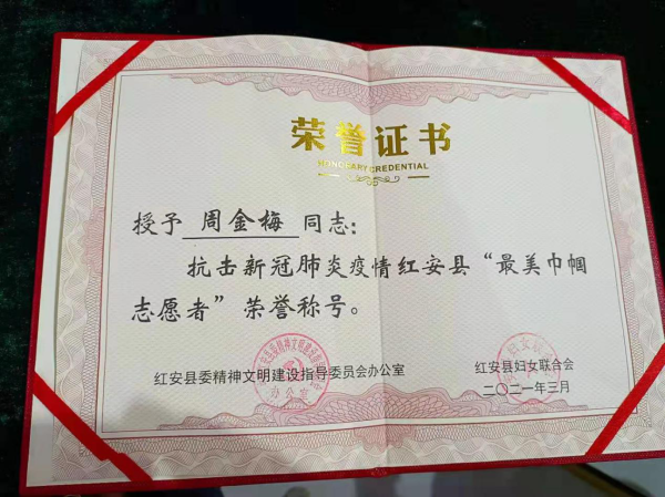 3月6日,紅安縣婦女聯合會和紅安縣委精神文明建設指導委員會,組織全縣各單位慶祝“三八”國際婦女節暨評選表揚大會在紅安縣金沙社區禮堂隆重舉行,大會上表彰了2020年度紅安縣“最美家庭”、“巾幗文明崗”、“抗疫最美巾幗志愿者”等一批先進典型。紅安郵政分公司城南投遞站投遞員周金梅被評為“抗疫最美巾幗志愿者”。
