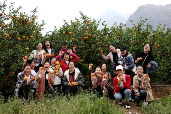到了芒寬柑橘園,大家自覺結隊,信步觀賞橘園風景。首先是紫花道大合影,因為這將是下一個網紅打卡點,來自郵政“女神”們自詡不凡的判斷;其次是彩虹橋擺渡體驗,因力量懸殊重心不穩晃落的狼狽樣引得彼此捧腹大笑;最后是參觀柑橘園。大家爭先恐后的涌入園內,看著滿眼金燦燦的柑橘掛滿樹枝,頓時驚喜萬分,“我太愛了”!不知是誰忍不住喊了一聲。隨后就有人下意識的掏出手機拍照,有人摘果子嘗起來,有人發現了灰挑和苦圈圈迫不及待的找起來……“三八”節,我們共赴花草,用一朵花開的時間,尋找最美麗的生活。返程時,大家執意要走老路,就為了看看三界橋邊火紅的攀枝花林,可惜天色已晚未如愿。大家興致盎然約定了看花時間,小娟說:“怒江的春天最美麗,我不想錯過每個春季,特別是‘三八’活動,熱鬧又難忘”!