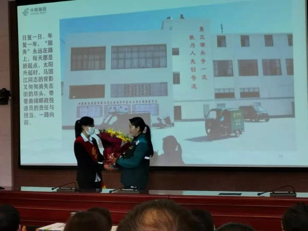 在學模范環節,感受道德力量,感知敬業風范。大家聆聽著羅平縣郵政分公司女子投遞班組組長馬國江用樸實無華的語言講述自己工作的故事。她以奉獻之心干工作,以誠信之心待客戶,以友愛之心對他人,用實際行動詮釋了“責任”“擔當”和“奉獻”。她在平凡中有一顆愛企如家、敬業奉獻的心,14年來在平凡的崗位上做出不平凡的事跡。