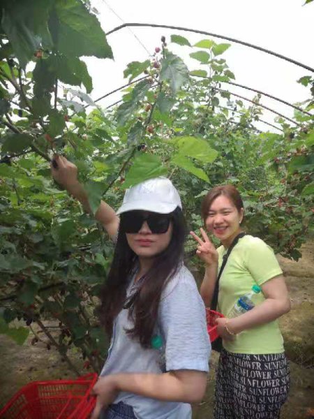 到達采摘基地果蔬園門口,大家紛紛拿好籃子,興沖沖得進入了溫暖如春的大棚。滿園的桑葚香氣撲鼻而來,通紅的桑葚掛在綠葉叢中,嬌艷欲滴,讓人看著笑逐顏開。處處生機、繁枝累累的果實讓大家興奮不已,個個摩拳擦掌,躍躍欲試。果園里,大家歡聲笑語,相互交流,拍照留念。沐浴著夏日的陽光,徜徉在芳香四溢的果蔬園里,大家領略著迷人的夏景,心情舒暢,體驗親手采摘的快樂。