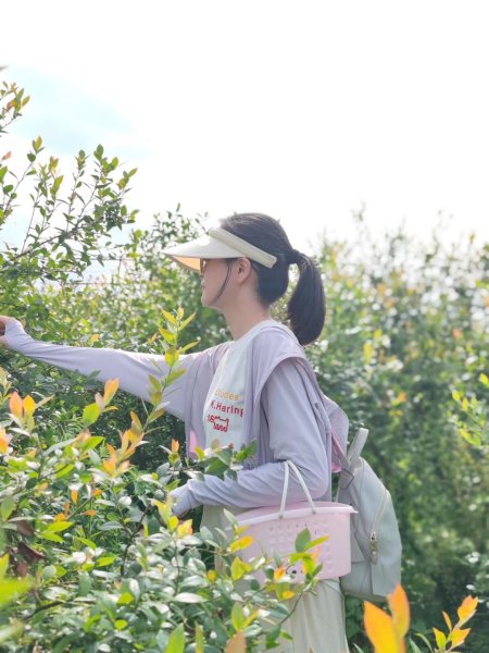 大家三五成群穿梭在藍莓叢中,體驗采摘的樂趣。有的邊采摘邊品嘗,有的拿起一顆顆藍莓拍照,有的放上音樂和藍莓一起拍視頻,莊園里到處都是歡聲笑語。