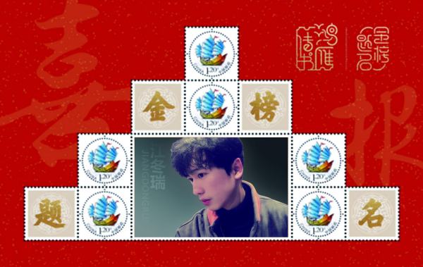金榜提名郵票該版式以“夢想啟航”為主圖,6枚版特殊版式,成品尺寸為270x180mm。個性化郵票整體呈階梯形狀、不斷上升,象征莘莘學子金榜題名后夢想啟航、不斷攀登人生高峰。邊飾中以紅色和金色表達喜慶祝賀之意。邊飾上暗紋字為“報喜”與右上角的“金榜題名”印章,呼應金榜題名主題,更加突出的表達對于莘莘學子最樸素美好的祝愿。 目前有8位學子現場收到一套金榜提名個性化郵冊禮物,感到自己的肖像躍上個性化郵票這一“方寸世界”里,并且具有極高的收藏價值和紀念意義,紛紛表達要在大學好好學習,將來為社會做出貢獻。