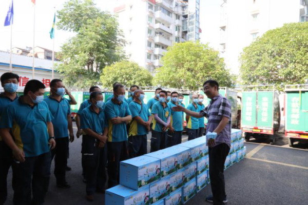 在夷陵區夷興大道投遞站,喻明強總經理親手將清涼大禮包送到34名投遞員手中,代表市公司黨委對他們表示親切慰問,囑咐他們,注意安全,做好普遍服務,在高溫、多雨天氣里,注意防暑防疫,還要做好與客戶的溝通,確保人身、郵件、交通等安全。