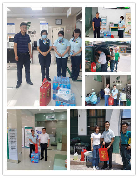 在六安市分公司、市郵政工會的關懷指導下,自7月22日始,六安市城區分公司組織開展“送清涼、促生產”慰問基層活動,由區分公司領導班子成員帶隊分成3個慰問組,將十滴水、礦泉水、涼茶等防暑降溫慰問品送到36個營業網點213名外勤人員的手中。