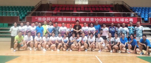 7月28日,由鷹潭市郵政工會舉辦的“羽你同行”鷹潭郵政慶祝建黨100周年羽毛球比賽在余江體育館隆重舉行,共有6支代表隊的60多名運動員參賽。比賽設團體比賽和單項比賽,單項比賽設男單、女單、男雙、女雙、混雙,共六個項目。