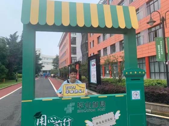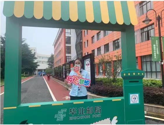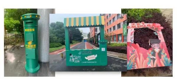 個性定制的畢業T恤、青春時尚的綠色展臺、復古傳統的郵筒、坐落在操場上的畢業郵局。吸引了眾多畢業生駐足打卡,記錄難忘的畢業時刻。