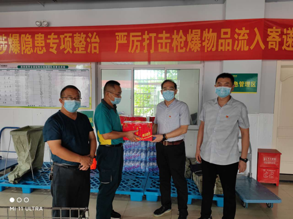 2021年8月12日,受省分公司領導委托,池州市分公司領導班子分別攜工會、綜合辦、黨建部、運管部等部門負責人一行冒著酷暑,先后去往一市三縣,深入到郵件處理中心、各支局所親切慰問一線職工,把省公司黨組的殷切關懷和工會組織的親切慰問送到了大家的心坎上,令置身酷暑中的員工們感受到一縷縷別樣的舒心清涼。 每到一處,市分公司領導與一線員工親切交談,為大家?guī)淼V泉水、王老吉等防暑降溫食品,對大家烈日作業(yè),任勞任怨、敬職敬業(yè)的工作精神表示由衷的感謝,并叮囑大家要合理安排作息時間,做好暑期防范工作,注意安全生產,平安度夏。同時叮囑大家一定要落實好疫情防控措施,嚴格做好戴口罩、測體溫、作業(yè)場地消毒等日常工作。