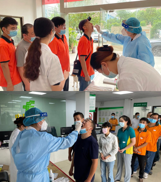 工會事先將人員名單、檢測時間、檢測地點統計確定后,8月12日上午8:00聯系三甲醫院馬鞍山市十七冶醫院上門,集中對首批244名員工進行核算檢測。檢測現場秩序井然,員工手持本人核酸檢測條形碼,在不耽誤生產的情況下,按照醫護人員的提示有序、快速地完成了此次檢測。參檢員工直言:“上門檢測大大節省了去醫院門診排隊待檢的時間,自己的身心健康又多了一份保障。”