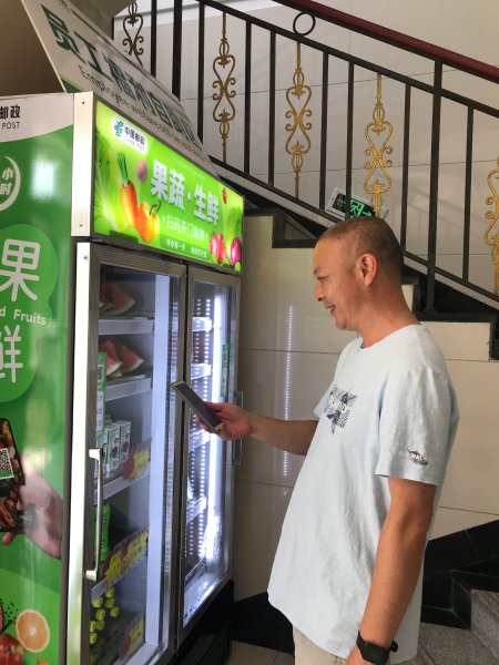 在分公司辦公大樓的大廳里,陸陸續續有職工走到自助果蔬柜前掃碼購買里面的商品,邊吃邊贊嘆著,臉上洋溢著幸福的微笑!
