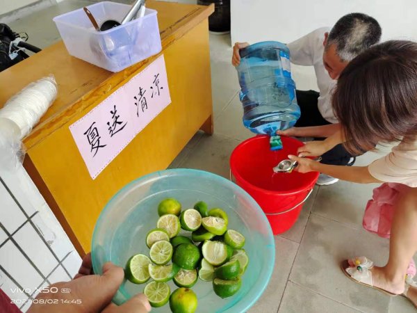 州公司防疫督導組到現場進行防疫工作執行情況檢查時看到夏送清涼現場,工會主席張敬紅對此活動給予贊賞,同時對現場職工進行了親切的關心和慰問,職工紛紛表示,在炎炎夏日能喝上單位“請客”同伴制作的檸檬水,大伙都非常開心。