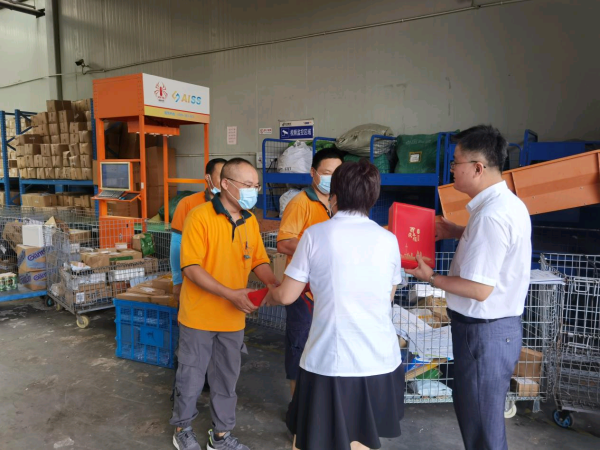 近日,持續的高溫讓一線投遞作業備受考驗。8月23日,中國郵政集團有限公司上海市分公司財務部嚴思顥副總經理來到了南市郵政支局和馬當路營業部,看望慰問奮戰在高溫下的投遞員工,為他們送去清涼和關愛。