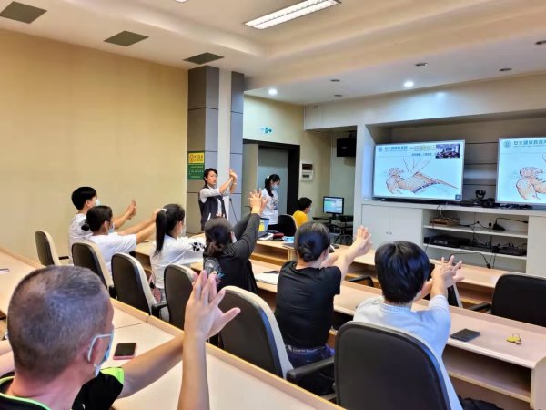 講師朱學芬從“現場急救知識(人工呼吸、胸外按壓)、心腦血管疾病預防、空氣污染及健康防護、職業病與慢性病的預防(高血壓、肩周炎、頸椎病)”四個方面做了專題講解,各分會場座無虛席,參會職工聚精會神。
