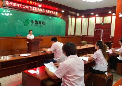8月26日下午,定州市分公司工會協助金融業務部舉辦了“員工行為規范”主題演講活動,來自網點一線的17位優秀選手參加了演講比賽。