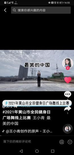 全部參賽選手通過抖音話題搜索“2021 年黃山市全民健身日廣場舞線上比賽”或掃抖音碼,上傳視頻進行參賽。在網絡平臺投票環節,最后評比出“最佳人氣獎”和“最佳創意獎”并分別頒發證書及獎勵。