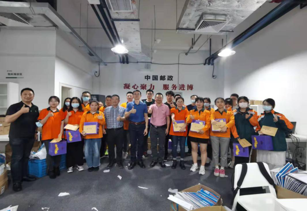 10月29日下午,區分公司黨委副書記、副總經理沈飛華在工會工作人員的陪同下,帶隊赴進博證件寄遞服務中心進行慰問活動,為全體在崗的每位員工送上慰問品及慰問信,對志愿加入證件寄遞服務項目團隊的員工送去區分公司黨委的殷切關懷和慰問。