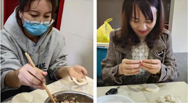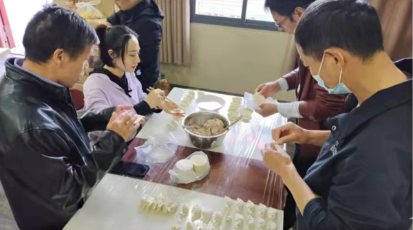 首先是包餃子活動。大家分工協作,配合默契,紛紛使出看家本領,剁餡、腌制、包餃子、上盤……大家表情專注、動作嫻熟,一揉一捏一包一夾,一招一式都有模有樣,場面充滿了濃濃的溫馨氣氛。