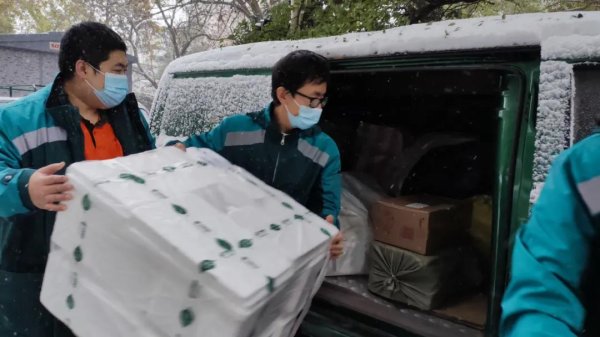 戰旺季,燃在一線生產。11月7日,東城區分公司一頻進口郵件近10000件,在攬投平臺作用下,早7:30已全線趕班發往各點部。此時,各點部也早已清理好車輛,全員嚴陣以待。由于東城區道界多為狹窄胡同和無電梯的老舊小樓,多數投遞員、攬投員只能在有限的道段上使用二輪電動車,加上風雪的影響,都為今天的投遞工作增加了難度。然而,風雪更加燃起了東城郵政人的熱情,全局上下共同投入郵件投遞,一輛輛郵政車、一名名投遞員頂風冒雪穿行在街道巷尾。至上午12時左右,一頻進口郵件基本妥投到戶。