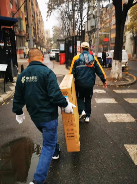 他們投遞的華為大屏最小的55寸,最大的75寸,體積大,重量沉,大多都是69公斤,搬起來十分不易,兩人抬都要格外的小心!遇到老舊小區(qū)沒有電梯的時候,就更加的困難了,只能一層一層爬樓入戶。員工們在寒冷的冬天,爬樓依舊一身汗!他們?yōu)椤半p11”高峰努力著、堅守著、奉獻著,他們?yōu)樽層脩艨焖偈盏街腔燮帘疾ㄖ?/p>