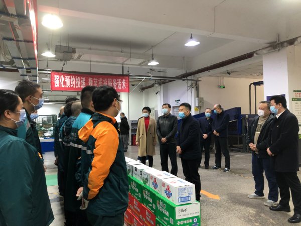 11月10日上午,市郵政管理局周向東局長(zhǎng)、市分公司胡紹波副總經(jīng)理及重慶市快遞業(yè)協(xié)會(huì)代表一行赴沙坪壩區(qū)曬光坪營(yíng)業(yè)部慰問奮戰(zhàn)在“雙11”旺季生產(chǎn)一線的投遞員。在作業(yè)現(xiàn)場(chǎng),周向東細(xì)致檢查皮帶機(jī)等自動(dòng)化作業(yè)設(shè)備的安全性,詳細(xì)詢問“雙11”期間營(yíng)業(yè)部每日的進(jìn)出口量,親切關(guān)心投遞員的工作及生活情況并送上牛奶、飲用水、方便食品等慰問品。和投遞員們站在一起,周向東稱贊郵政投遞員在關(guān)鍵時(shí)刻堅(jiān)守崗位、辛勤工作,體現(xiàn)了郵政企業(yè)行業(yè)國(guó)家隊(duì)的責(zé)任與擔(dān)當(dāng),突出了郵政業(yè)戰(zhàn)略性、基礎(chǔ)性和先導(dǎo)性的重要作用。最后,周向東親切囑咐大家要在工作中做好防疫防寒。