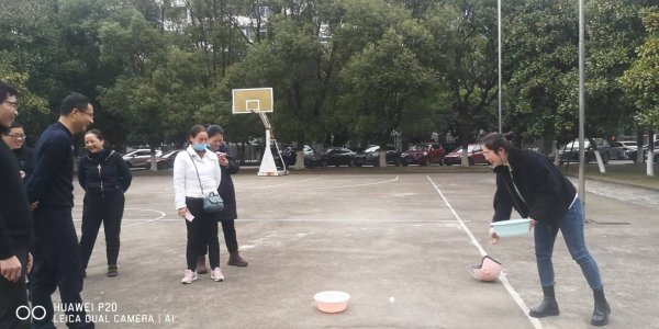 投籃進球的歡呼聲,跳繩技巧的探討,投擲乒乓球的聚精會神,各項目在員工們的歡笑聲中有序的開展。