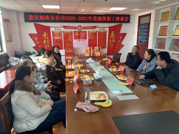 12月30日,蕭縣郵政分公司為即將退休的五位同志舉行了2020-2021年退休職工歡送會。蕭縣分公司領導向退休的職工表達了美好的祝愿,并且對他們幾十年如一日的努力工作給予充分的肯定和誠摯的感謝。希望他們離崗不離心,歡迎常回家,發揮余熱為蕭縣郵政的發展建言獻策。希望在職員工也要繼續努力,為蕭縣郵政分公司的發展貢獻力量。大家還共同回憶了工作中一起奮斗的點點滴滴,激將退休的職工飽含著對蕭縣分公司領導、同事的不舍之情,共同祝愿蕭縣郵政蒸蒸日上。