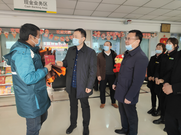 2022年1月18日,新春佳節即將來臨之際,省分公司黨委委員、副總經理陳平攜市場部總經理嚴正柱、金融業務部副總經理吳彩華及工會相關人員一行來到黃山市黃山區、歙縣兩地進行春節前“送溫暖”慰問和旺季網點金融發展、寄遞開門紅督導。