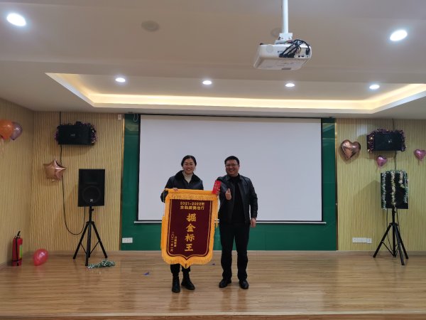 隨后,公司組織了金融跨賽認標,金融部易經理解讀了跨賽方案政策,各部門負責人、網點經理代表本單位進行認標。隨著各部門相繼進行認標,認標金額越來越高,現場期盼、吶喊聲越來越高。有的網點保存了實力,希望再次進行認標。公司也給了機會,讓他們在鮮紅的紙上寫下了認標金額。最終黃茅網點外拓經理湯滿英以2600萬元摘得2021-2022年金融跨賽他行“掘金標王”,王相前總經理現場授予錦旗,此次現場認標金額共計3.17億元。