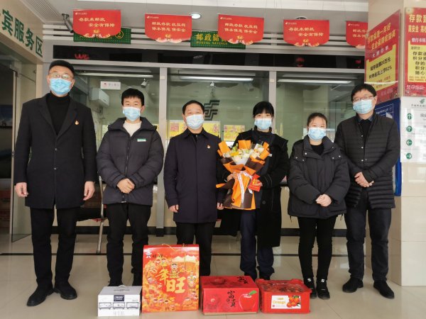 在新春佳節即將到來之際,2022年1月20日,江西省上饒市分公司黨委委員、副總經理盧敏攜市場營銷部經理于潔、集郵與文化傳媒部副經理彭榮軍、金融業務部祝小燕一行,赴鉛山走訪慰問省勞模、困難職工和奮戰在旺季生產一線的干部員工,為他們送去新春的關懷與祝福。