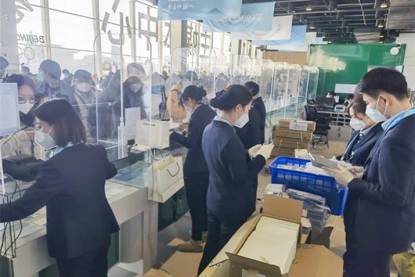 2月5日,《第24屆冬季奧林匹克運動會開幕紀念》相關郵品正式對外發售,主媒體中心臨時郵局迎來銷售高峰。這一天,臨時郵局還未開門,門口便排起長隊。如何應對如此集中的客流量?主媒體中心從前期準備、秩序引導、分工合作入手,優化服務細節,提高服務效率。服務團隊成員提前一個半小時到崗,做好環境消殺、設備調試、耗材補充、郵品備貨及碼放等班前各項準備工作;營業前,服務團隊的兩名秩序維護員便開始梳理排隊人員秩序,引導大家空出足夠間隔,做好購買準備;營業開始后,銷售、收款和賬務小組,分別負責郵品點單、收款和配貨工作,三個小組流水作業,服務效率得到進一步提升。