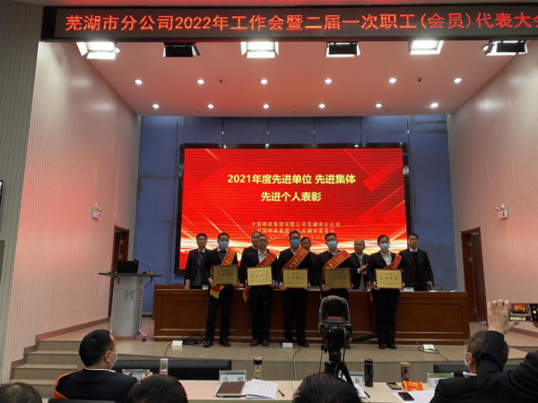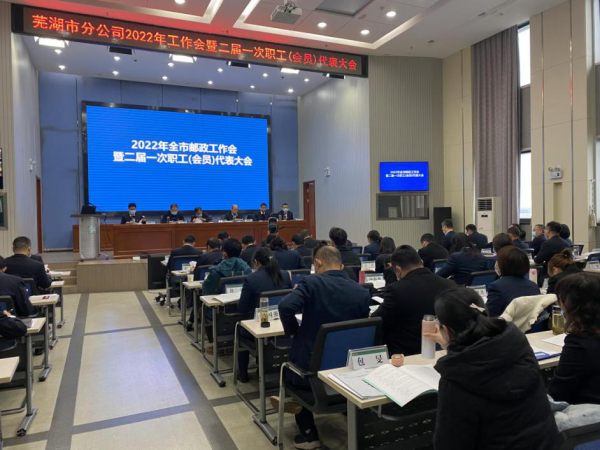 為全面貫徹黨的十九大和十九屆歷次全會精神,及省分公司工作會議精神,總結2021年工作,部署2022年任務。1月26日,蕪湖市郵政分公司召開工作會議暨二屆一次職工(會員)代表大會。會議嚴格按照疫情防控工作要求,結合公司實際情況,采取現場會和電視電話會議的方式召開,共設置1個主會場,4個分會場,60名職工代表參加此次大會。