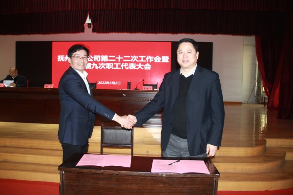期間,市分公司張華總經理與工會主席李捷平簽訂了2022年員工辦實事承諾書和工資集體協商專項協議,與臨川區分公司總經理簽訂了平安建設(綜治工作)責任狀。